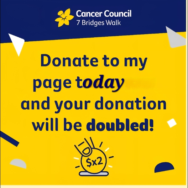 Please sponsor me and help those affected by cancer. Every step counts because all funds raised will help Cancer Council NSW work towards the vision of a cancer free future. Thank you for your support!